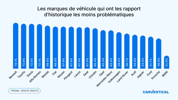 seulement 21% de véhicules ayant un historique propre. Viennent ensuite Porsche