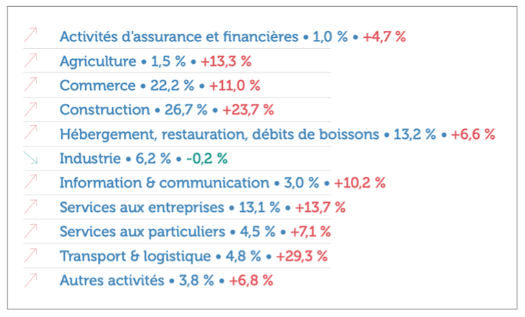 366 (+8,9%) et 1 994 (+9,8%) chefs d’entreprise en situation de « chômage ».