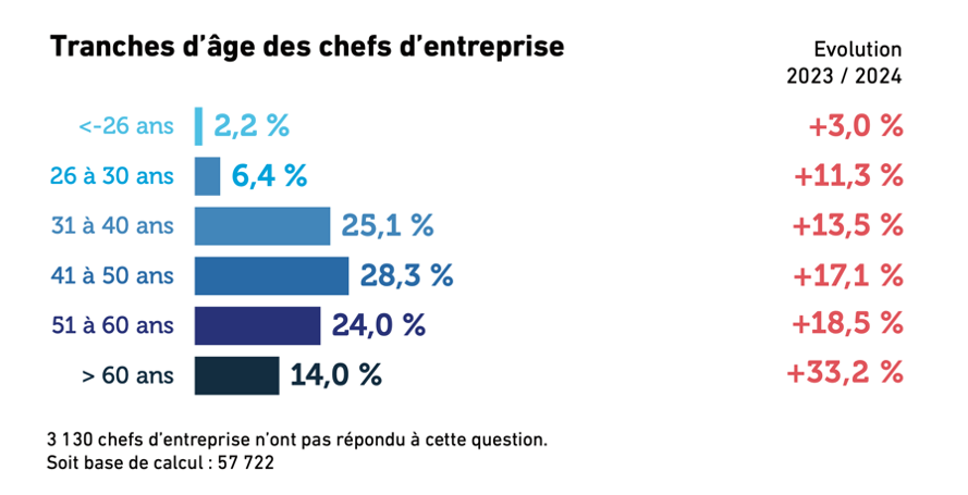 progresse fortement chez les plus de 60 ans (+33,2% sur un an ; 8 081 entrepreneurs