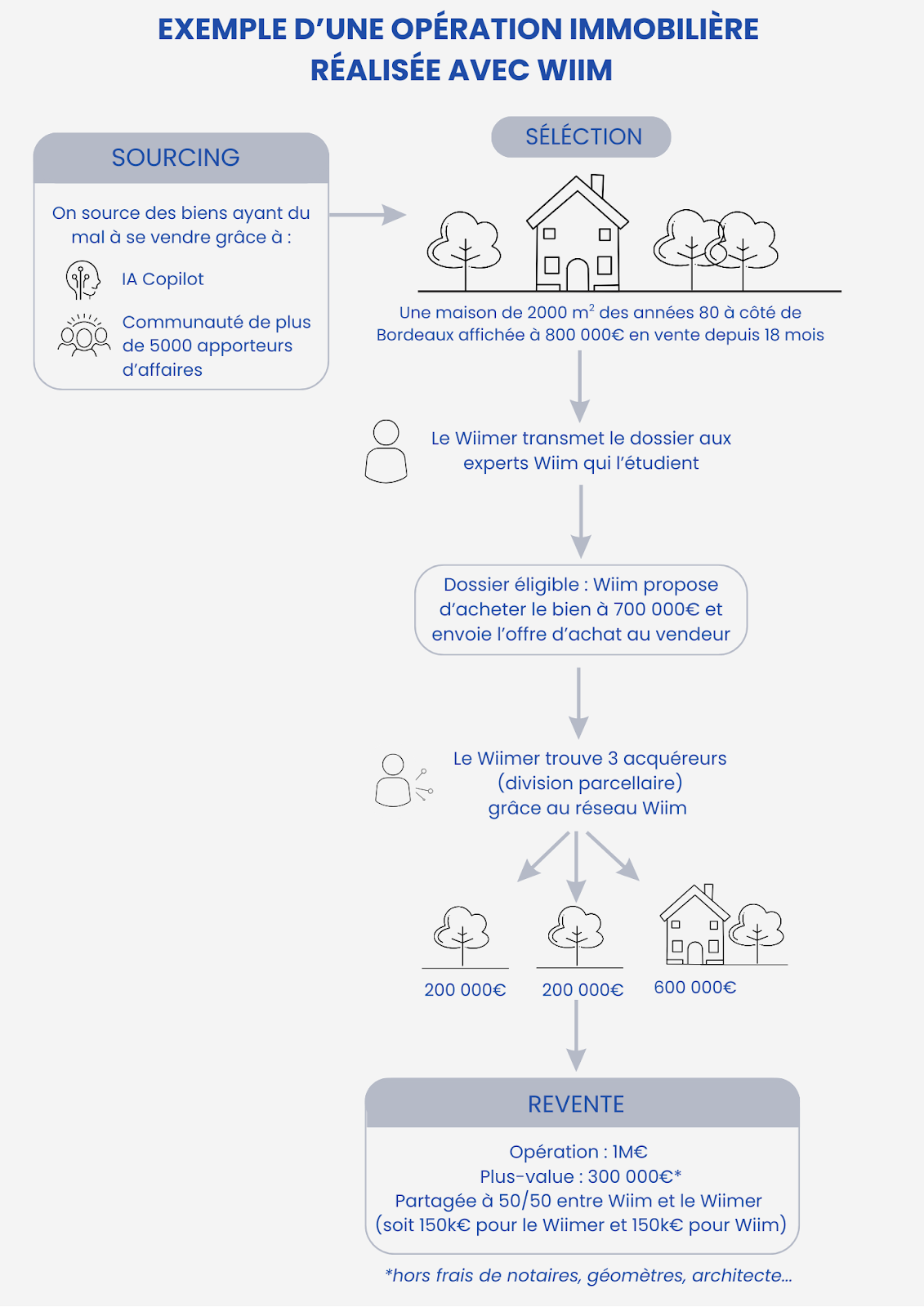 Dans un marché immobilier en crise, une startup bordelaise propose une nouvelle voie. Wiim lance la première solution d’immobilier collaboratif, qui permet à tout passionné d’immobilier, débutant ou confirmé, de réaliser des opérations d’achat/revente rentables, sans emprunt ni travaux.