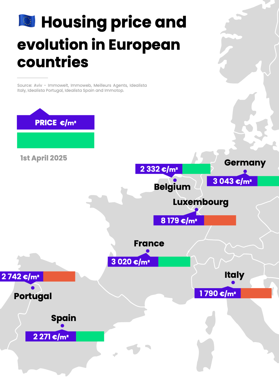 Chaque année, AVIV Group (comprenant notamment les marques SeLoger et Meilleurs Agents), analyse les dynamiques immobilières en France, Allemagne, Belgique, Espagne, Italie, Portugal et Luxembourg.
