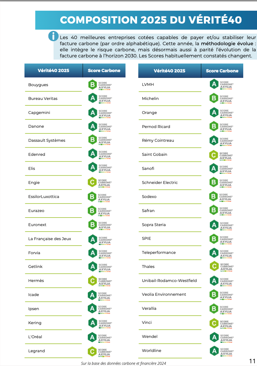 Ce classement unique est basé sur le Score Carbone Axylia, une méthodologie robuste et stable dans ses principes depuis 2019, qui convertit les émissions de CO2 des entreprises en euros.