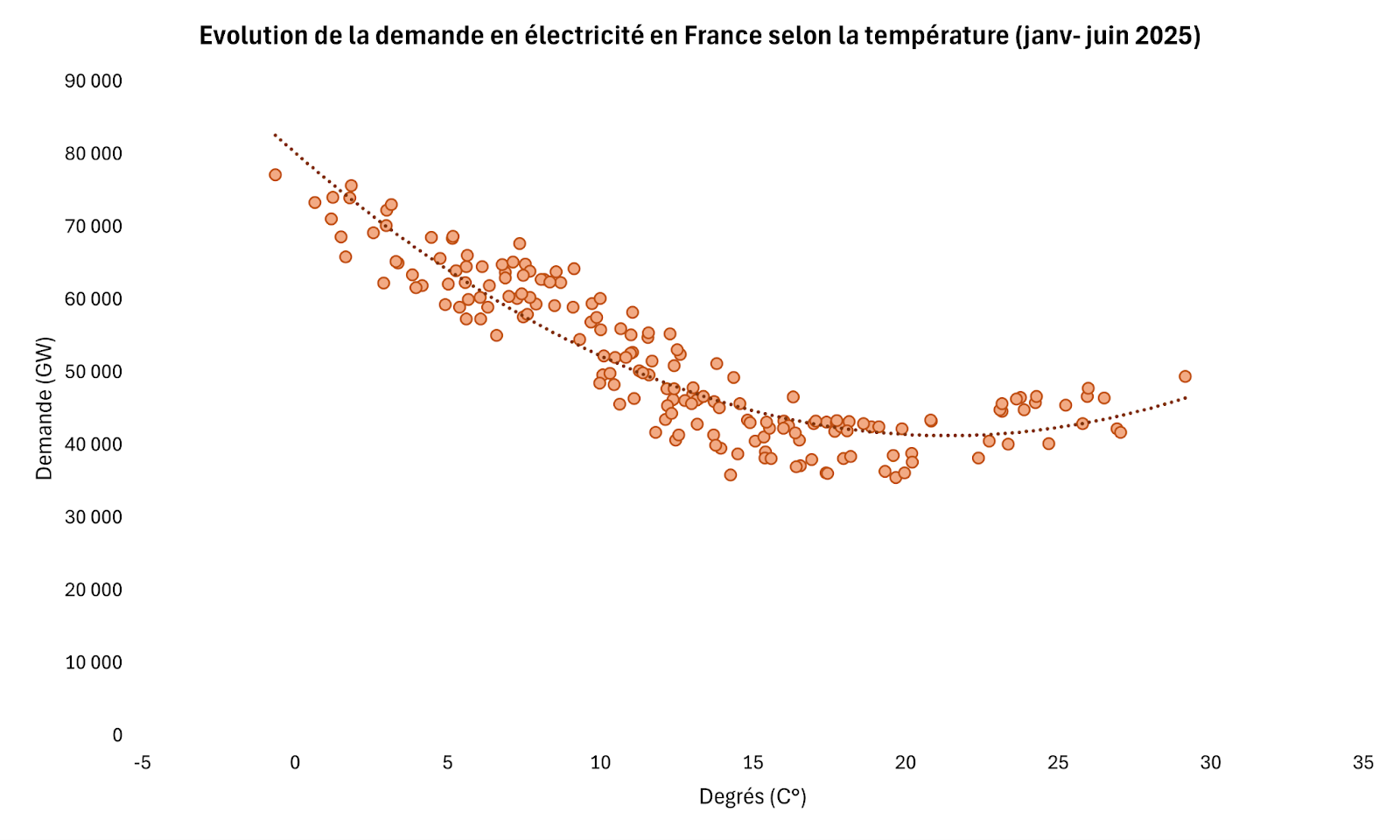 présentant l’évolution de la consommation en fonction des températures, il