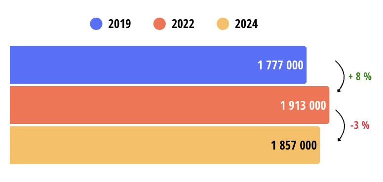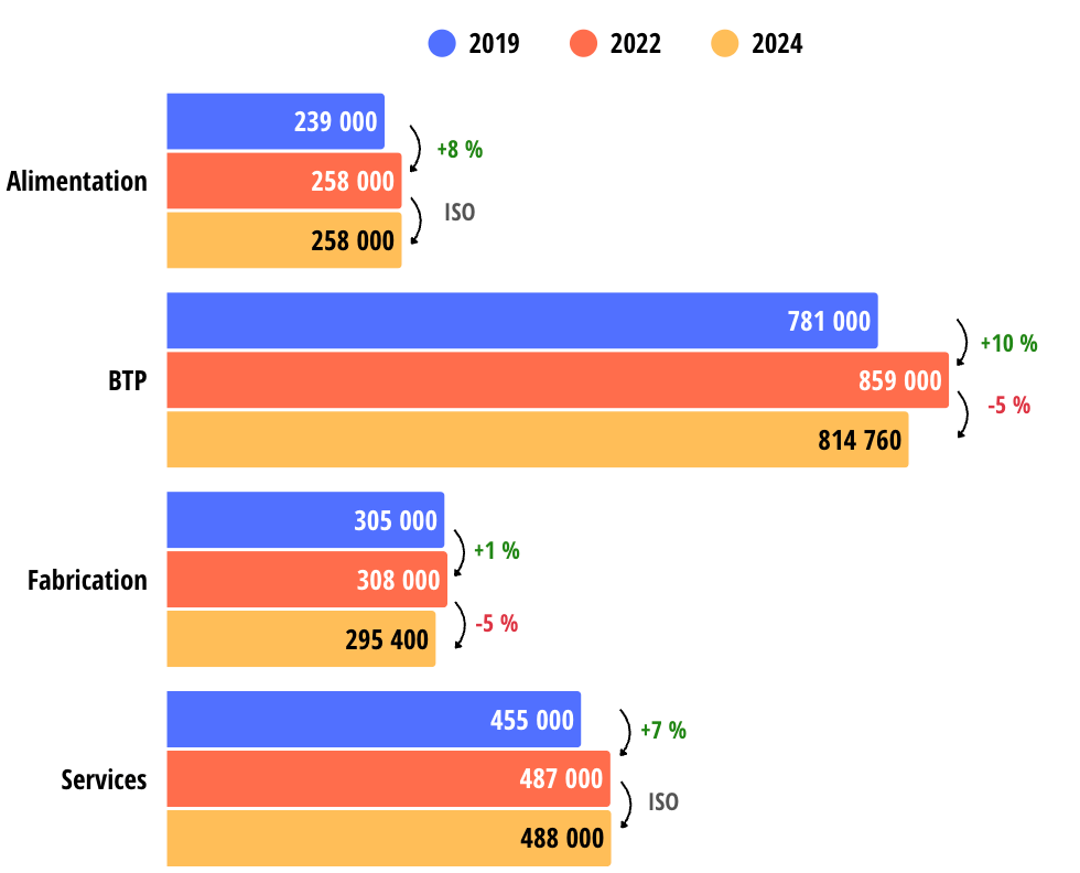 en léger repli global de 3 % entre 2022 et 2024. Un reflux dans le BTP (-5 %)