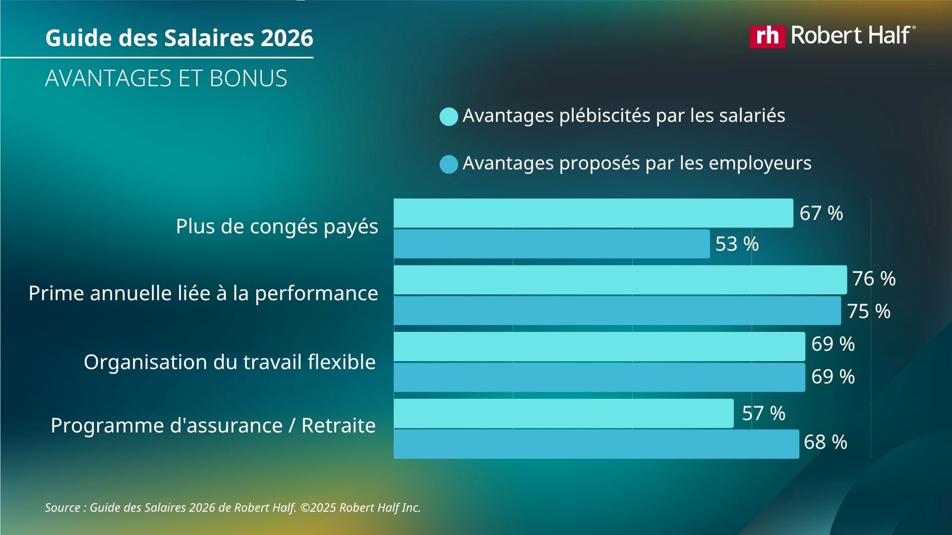 Robert Half fait le point sur les avantages les plus plébiscités par les salariés français en 2026.
