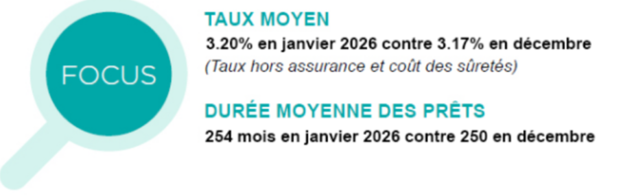 En janvier 2026, le taux moyen des crédits passe à 3,20%