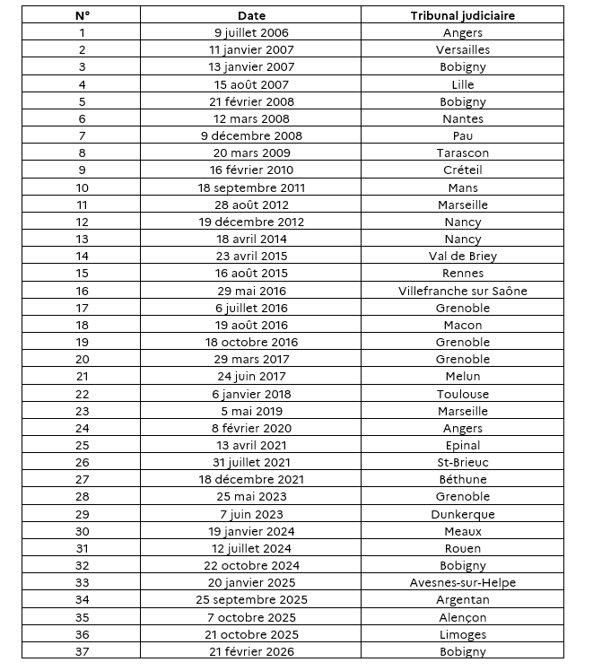 • Entre 2019 et 2025, sur 14 alertes