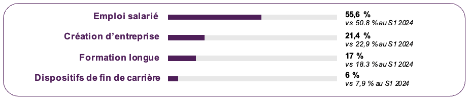 aussi bien dans le retour à l’emploi (21,7 % au S1 2024 vs 13,2 % au S2 2025)