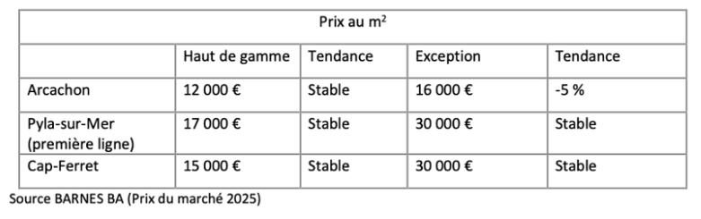 emplacement rare. Pour 2026, BARNES Bassin d'Arcachon anticipe une évolution