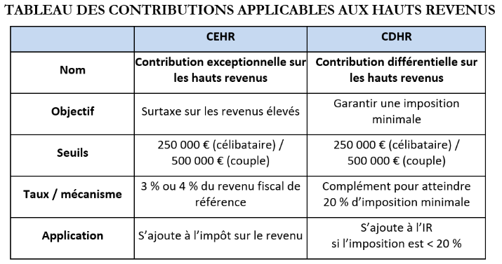 minimale de 20 % aux contribuables les plus aisés. Cette contribution est