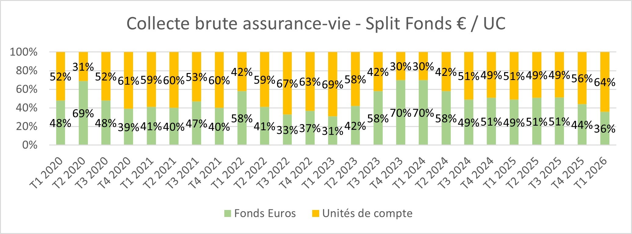 64% de la collecte brute est orientée en Unités de Compte (UC) contre