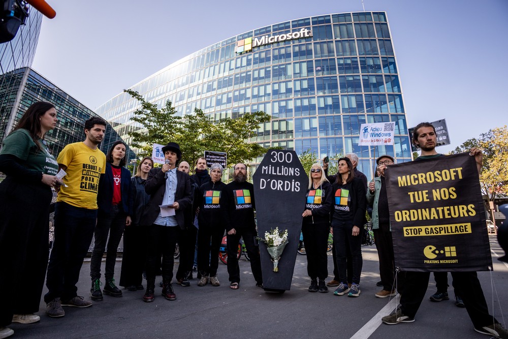 300 millions d’ordinateurs.« Nous sommes réunis en ce jour du dépassement français pour dénoncer la condamnation prématurée de plus de 300 millions d’ordinateurs, pour cause de mise à jour incompatible, imposée par Microsoft », annonce la maîtresse de cérémonie.